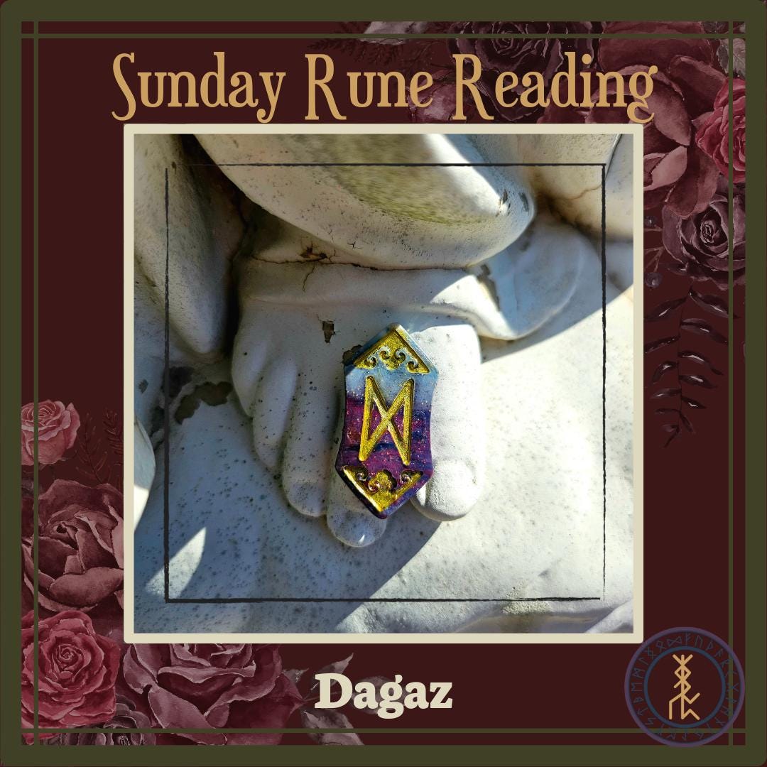 Dagaz may serve several purposes when used in one’s alter space. It is a wonderful rune for channeling energies of both Mabon and Ostara, though it carries a stronger connection to Ostara. This rune may also be used for connection to, and worship of, the Norse god Baldr. Baldr is the god of light and beauty, and Dagaz is his rune.