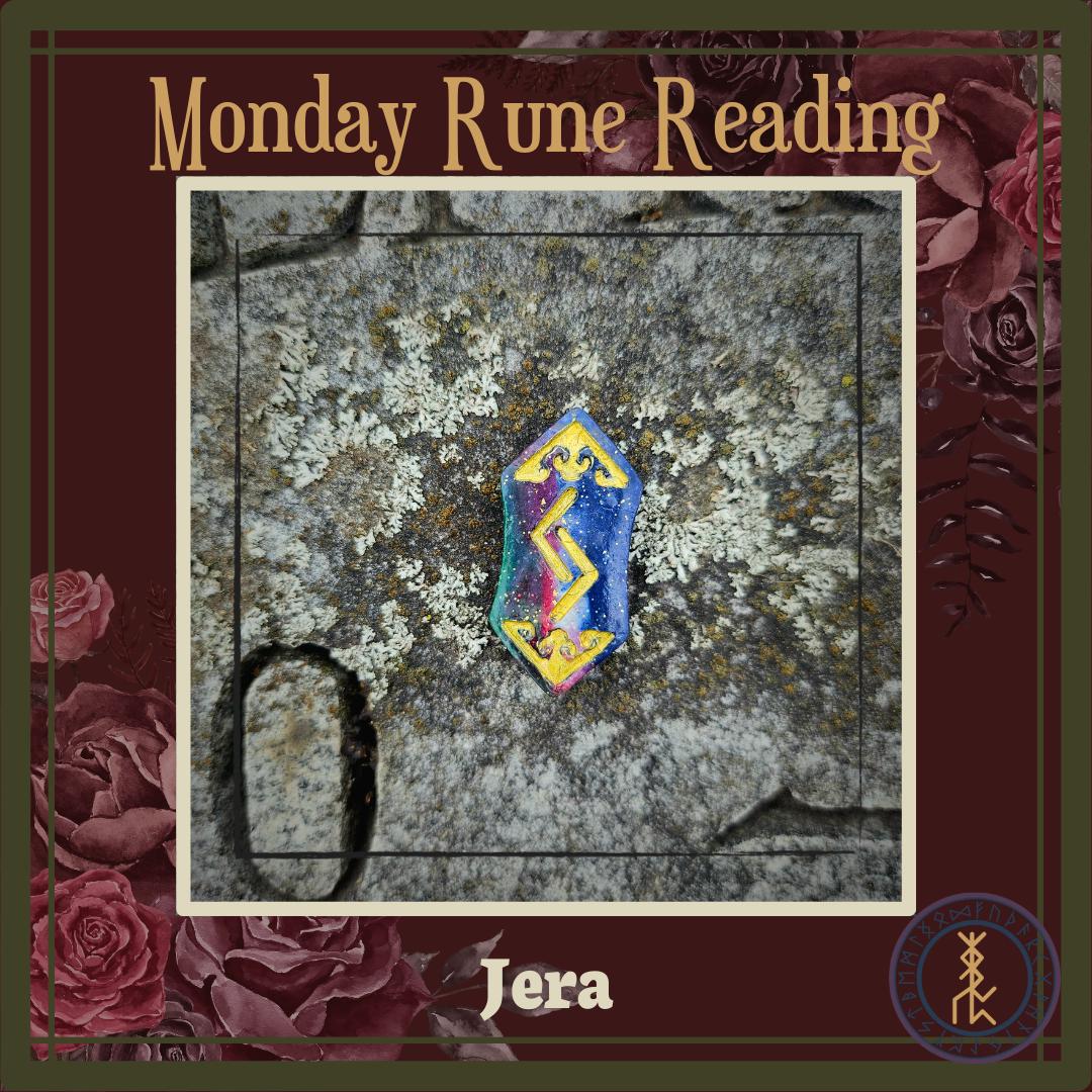 Jera represents the 12 months of the year, concerning itself with the natural law rather than human conventions. It implies fruitfulness, profit or achievement of a goal, and rewards for past efforts. Jera shows great reward to those who work with their hands or on the land. It also means the cycle of seasons implying movement, change, and natural development.