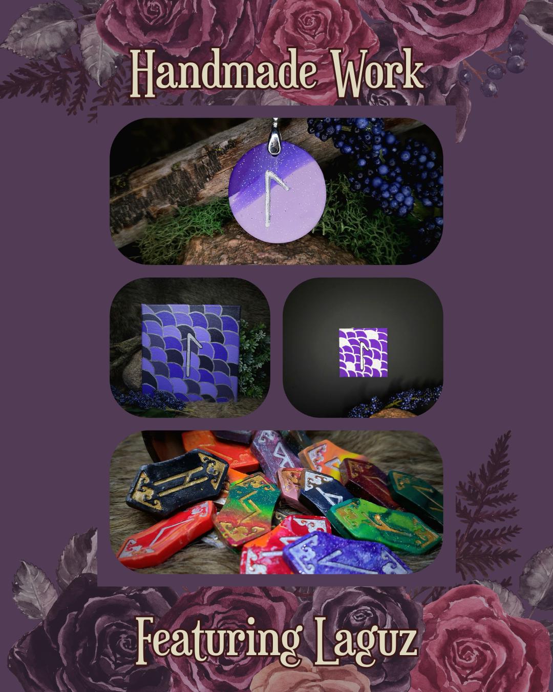 Use the Laguz Norse Rune Pendant as a necklace, keychain, or other charm to carry the energies of Laguz with you. You may also hang it in your altar space