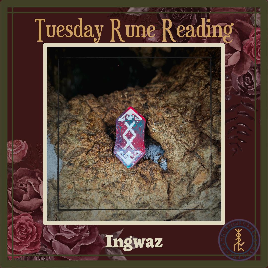 Ingwaz is the rune of the god Ing. Interestingly, Ing is the Old High German and Old English translation of the Norse god Yngvi. Yngvi is believed to be an older name for the well known Norse god of fertility, Freyr. Whether Ing, Yngvi, or Freyr, consider placing Ingwaz in your altar space if you worship one of these fertility gods. You may also carry Ingwaz with you to foster this connection.