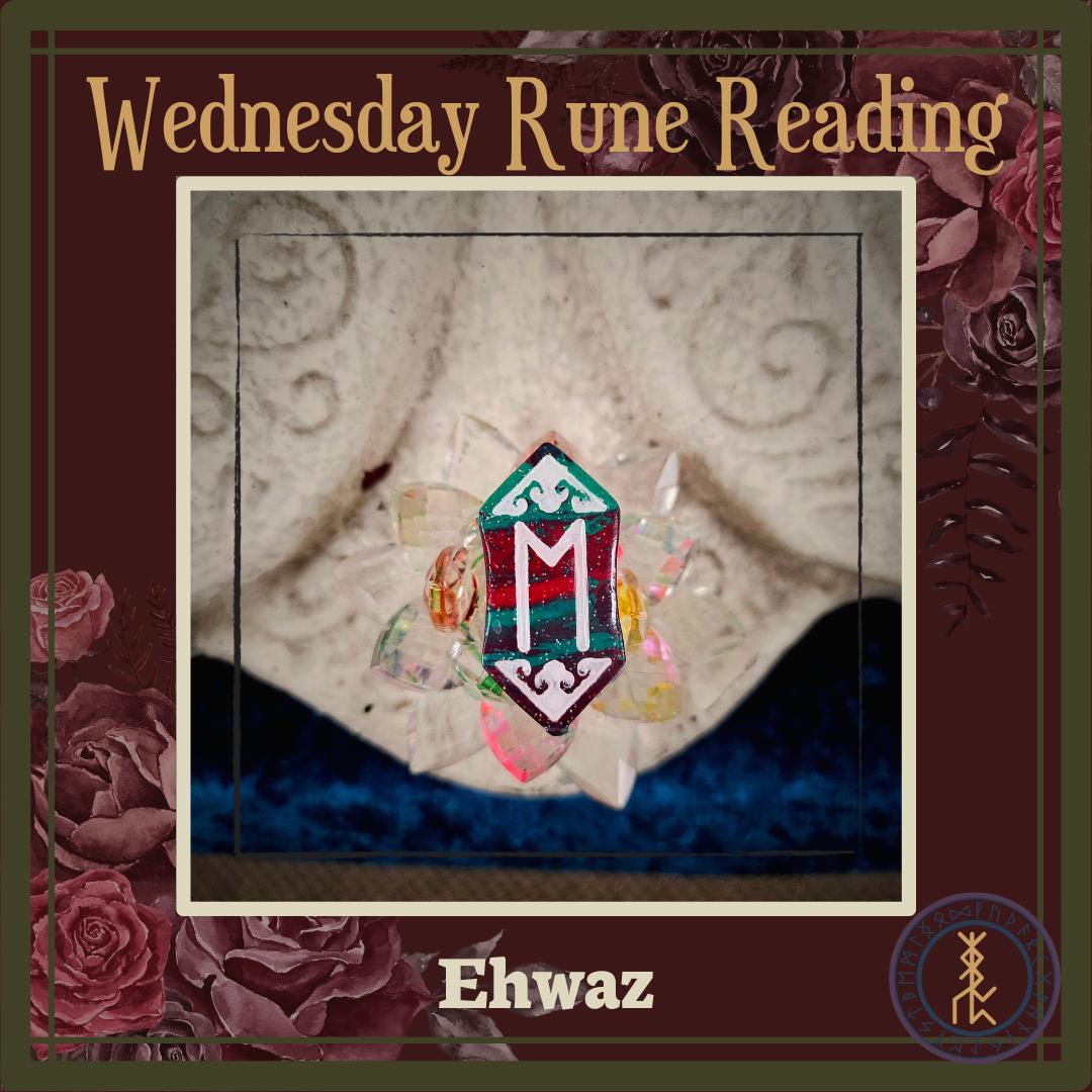 Due to its meaning of “horse,” Ehwaz may be connected to the great eight legged horse Sleipnir along with Odin by association. Carry Ehwaz with you to honor their great partnership or include this rune in your space of worship.