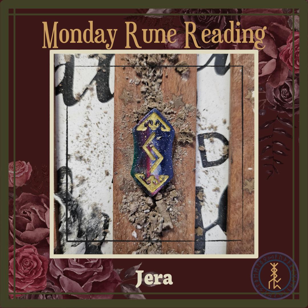 Jera represents the 12 months of the year, concerning itself with the natural law rather than human conventions. It implies fruitfulness, profit or achievement of a goal, and rewards for past efforts. Jera shows great reward to those who work with their hands or on the land. It also means the cycle of seasons implying movement, change, and natural development.