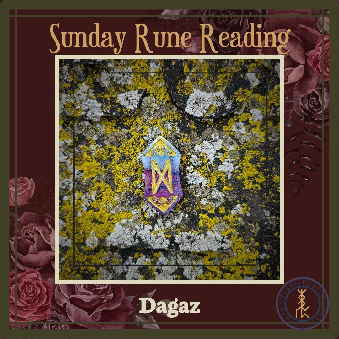 Dagaz may serve several purposes when used in one’s alter space. It is a wonderful rune for channeling energies of both Mabon and Ostara, though it carries a stronger connection to Ostara. This rune may also be used for connection to, and worship of, the Norse god Baldr. Baldr is the god of light and beauty, and Dagaz is his rune.