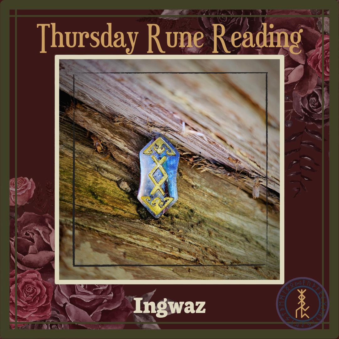 Ing is the God of fertility and the home hearth and Ingwaz is his rune. It signifies energy, specifically channeling potential energy to bring together separate things. The power of Ingwaz is not immediate but should be built up over time and then released all at once.