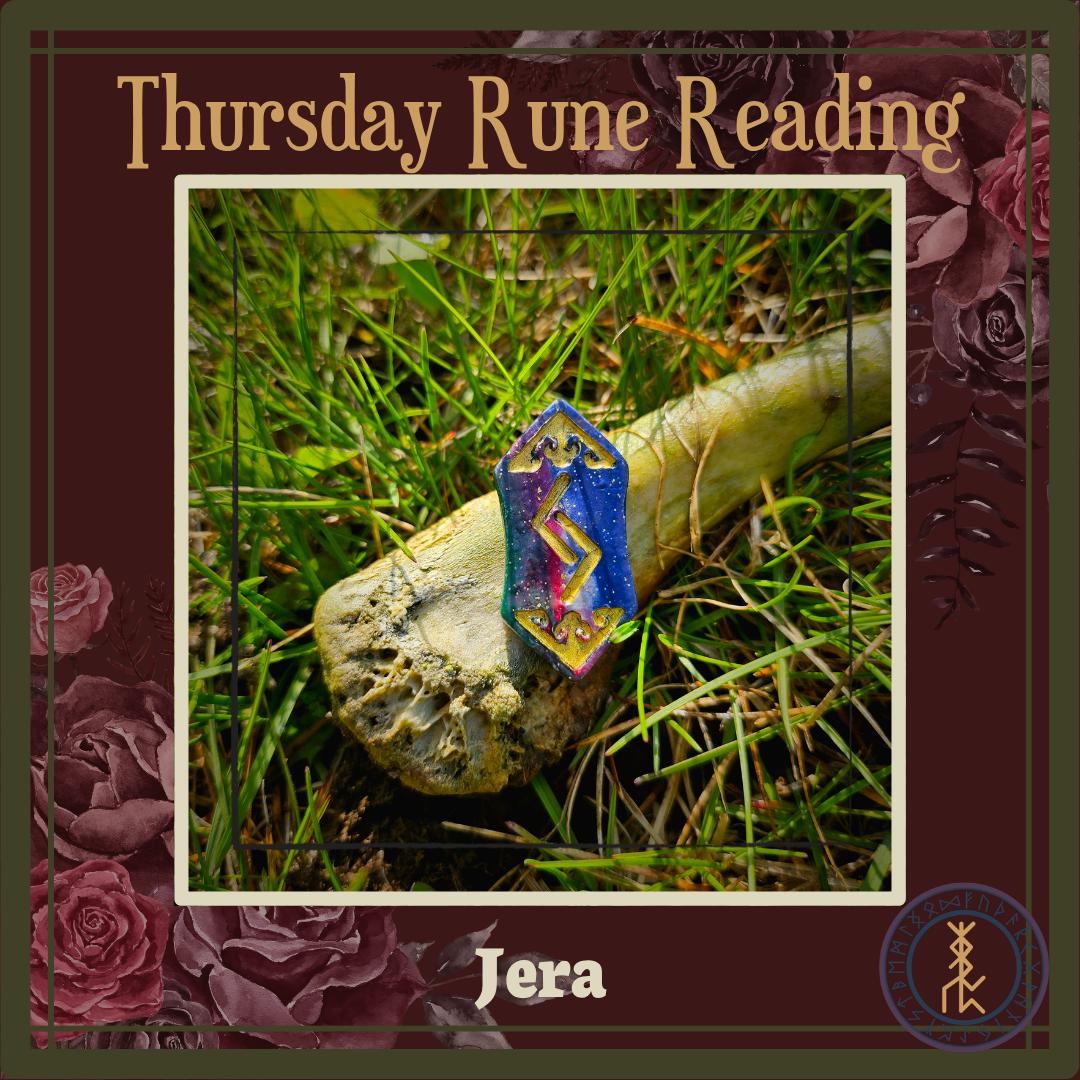 Jera represents the 12 months of the year, concerning itself with the natural law rather than human conventions. It implies fruitfulness, profit or achievement of a goal, and rewards for past efforts. Jera shows great reward to those who work with their hands or on the land. It also means the cycle of seasons implying movement, change, and natural development.